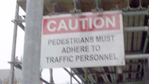 | A new take on getting close: “Pedestrians Must Adhere To Traffic Personnel” | |