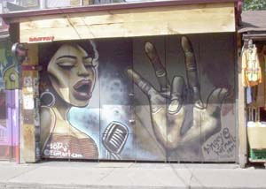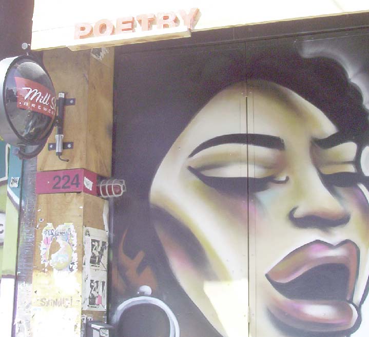 | Poetry, a jazz cafe, deserves two shots. One for the mural and one for the name. | |