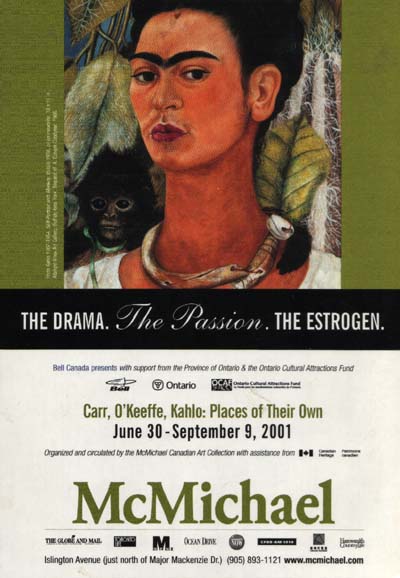 From a brief description 2001 exhibit at the McMichael. More story but sans mention of estrogen. But trust the reviews to echo the bold statement from the publicity ephemera: Deidre Hanna in Now (July 26-August 2, 2001, Vol. 20 No. 47) Estrogen Art.