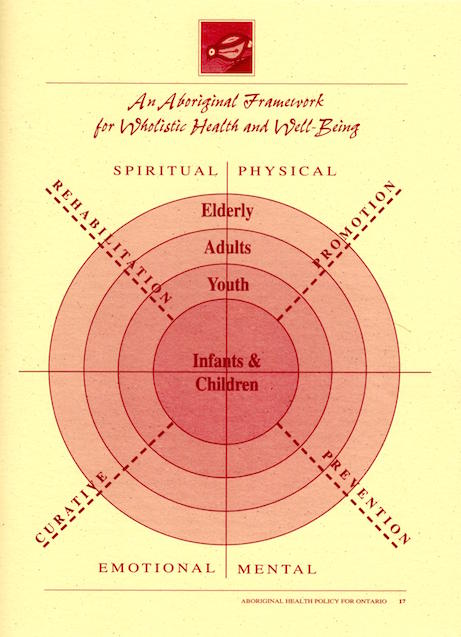 A version of the medicine wheel makes its appearance in government policy — 1994 in Ontario in the Aboriginal Health Policy.