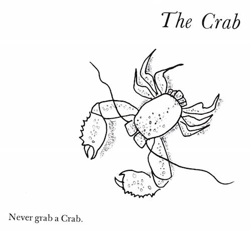 Indeed the illustration for this beast is laid out so that the crab is grabbing this short single line verse or admonition.