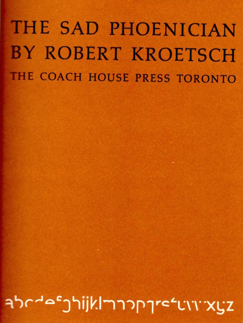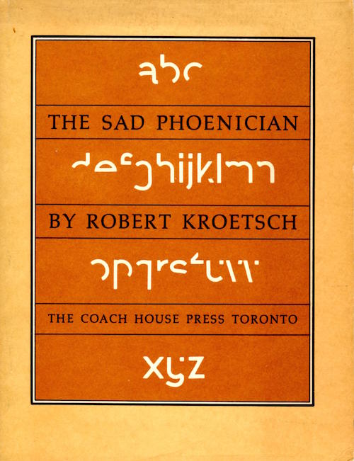 What one loses in reading The Sad Phoenician in Robert Kroetsch‘s Completed Field Notes is the design by Glenn Goluska for Coach House Press.