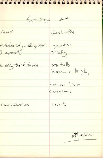Steno pads sometimes get buried in the book shelf which results in an asynchronous dialogue between entries distanced in time. For example, this entry from 2001 is revisited in 2002.