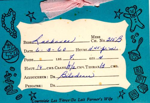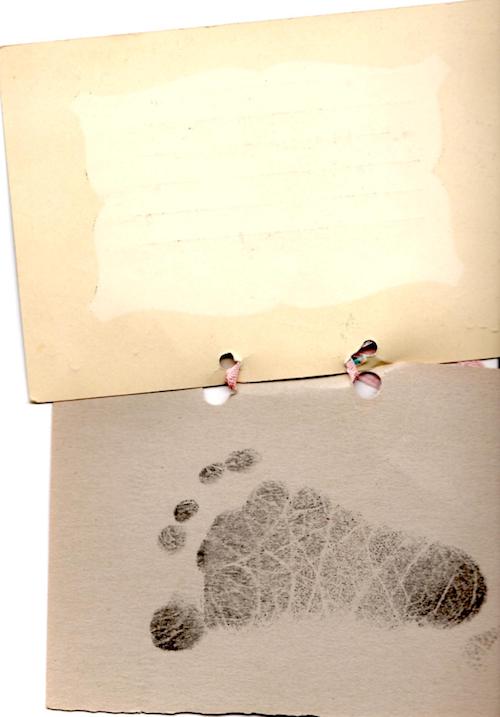 Sends me back to my first imprints. Recording weight and length and even the name of the “accoucheur”. Tag (with the metadata) and footprint have been kept together by a pretty pink ribbon.