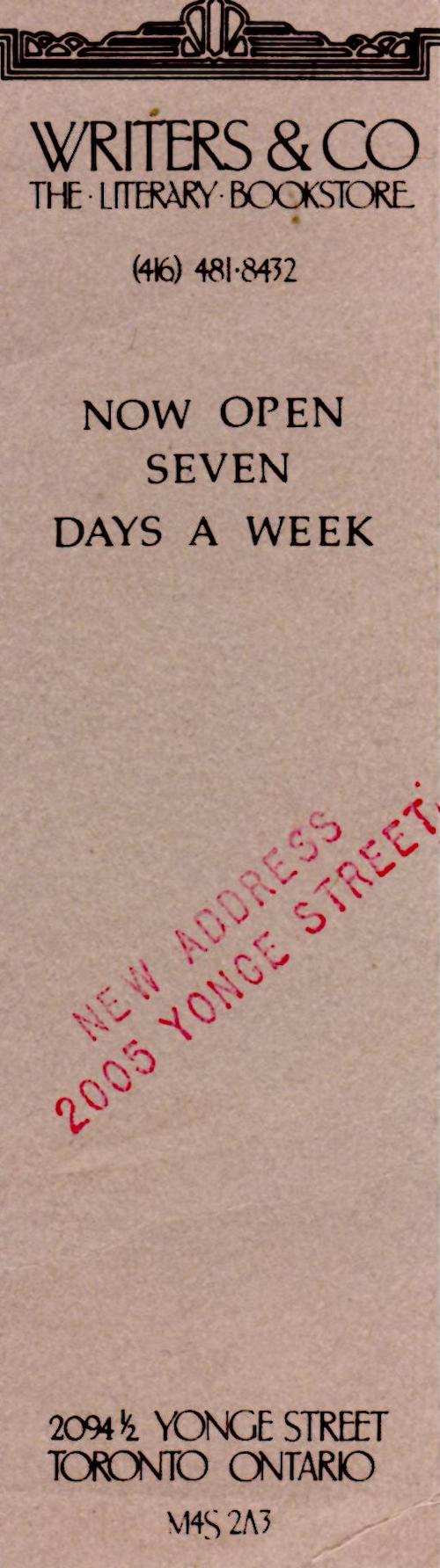 bookmarker - classic bookshop - montreal and ottawa - design by Allan Harrisonbookmarker - A Different Drummer bookstore - burlingtonbookmarker - Writers & Co - Toronto