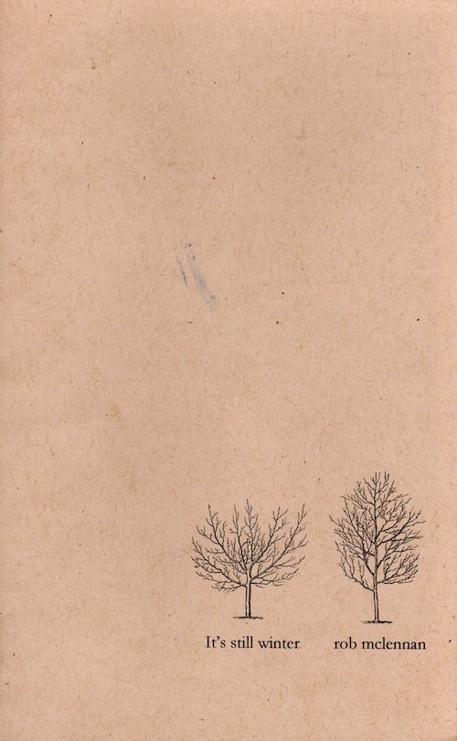 Cover of It's still winter by rob McLennan (two leafless silhouettes of trees - one each above title and above author name)